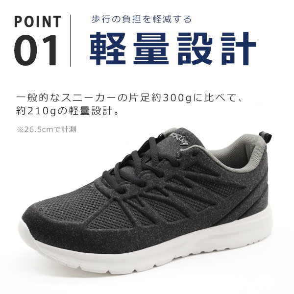 - 軽く、ワンサイズ大きめで、ゆとりある履き心地です。