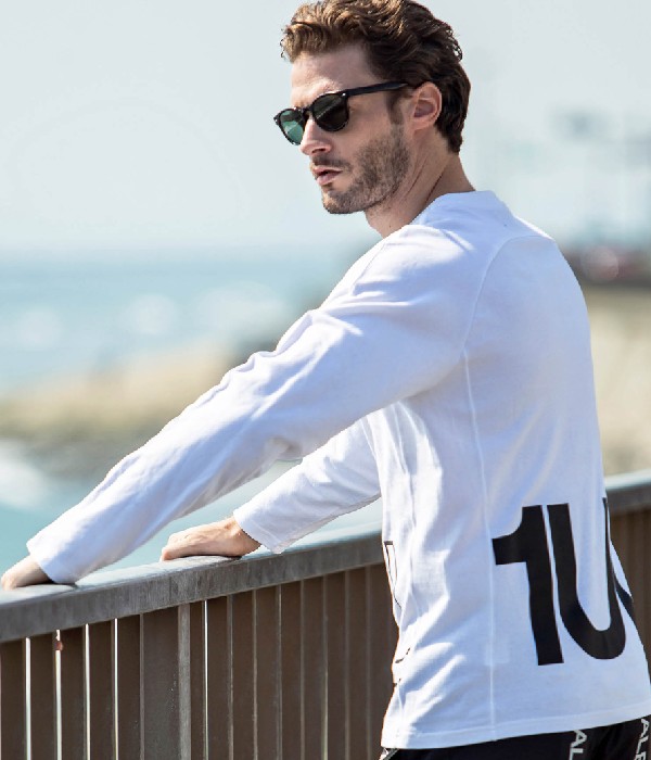 肩から袖下に切り替えを入れた立体的なシルエットと、 柔らかく吸水性に優れたコットン100%の肌ざわりが極上の着心地を演出。