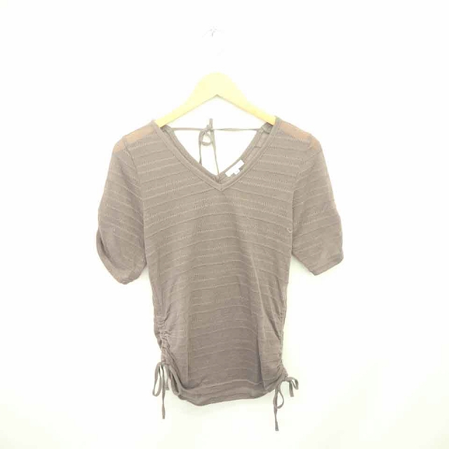 【中古】コルザ COLZA サマーニット セーター Vネック 薄手 透け感 麻 リネン混 半袖 M 茶 ブラウン /TT15 レディース