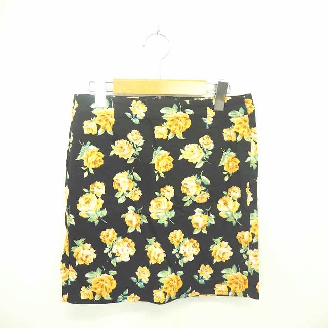 【中古】ジーユー GU スカート タイト ミニ 花柄 バックジップ 綿 コットン M 黒 ブラック オレンジ /TT9 レディース