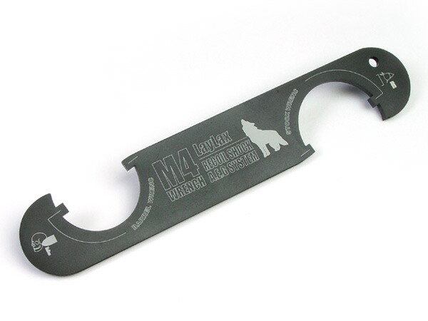 Laylaxの次世代M4 レンチ。これ1本でアウターバレル固定リングとストック固定リングの両方に使用でき、取付・取外しが可能になります。
