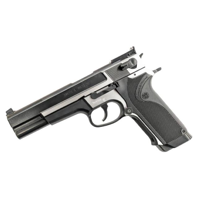 スミス&ウエッソンの美しいデュアルトーンのハンドガンだ。