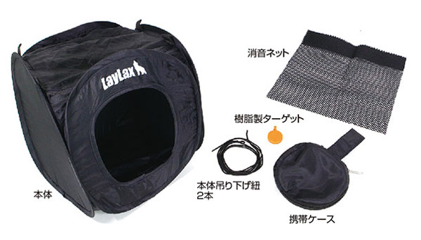 トラップボックス形態なのでBB弾は飛び散らず、消音ネット装備で着弾音も抑えられる。