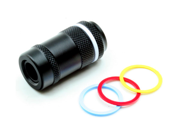 14mmの逆ねじ仕様になっていて、おおよその電動ガンのマズルの換わりに取り付けてBB弾の発射エネルギーを落とす装置。