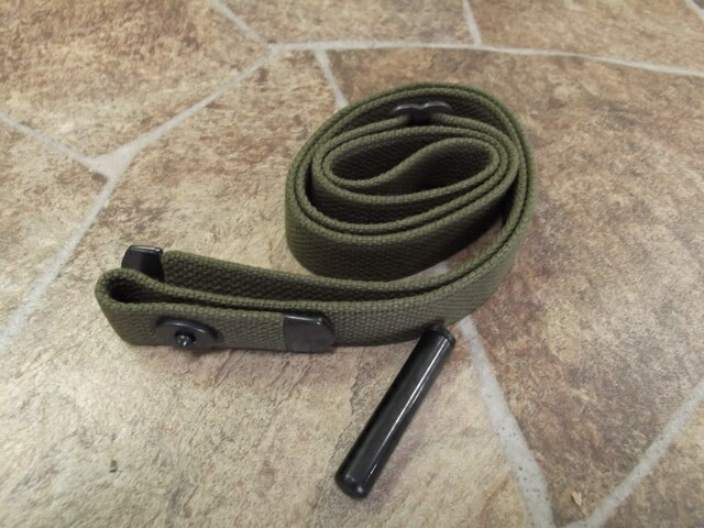 タナカ製M1/M2カービン各モデルに対応した、布製スリングとオイラー(スリング通し金具を兼用した油差しの筒)のセット。(タナカ製でなくても多分使えると思います)
