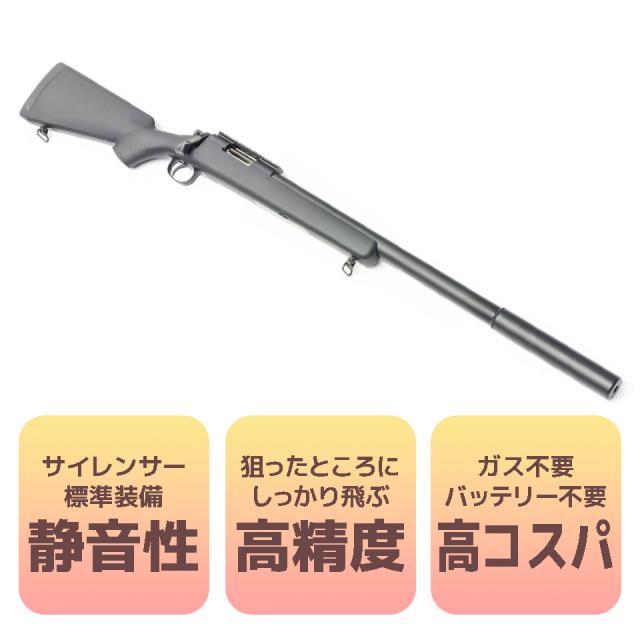 ・精悍なブラックスタイル:光の反射をおさえたつや消し仕上げとブラックで統一されたカラーが、スナイパーライフルとしての精悍さを演出しています。