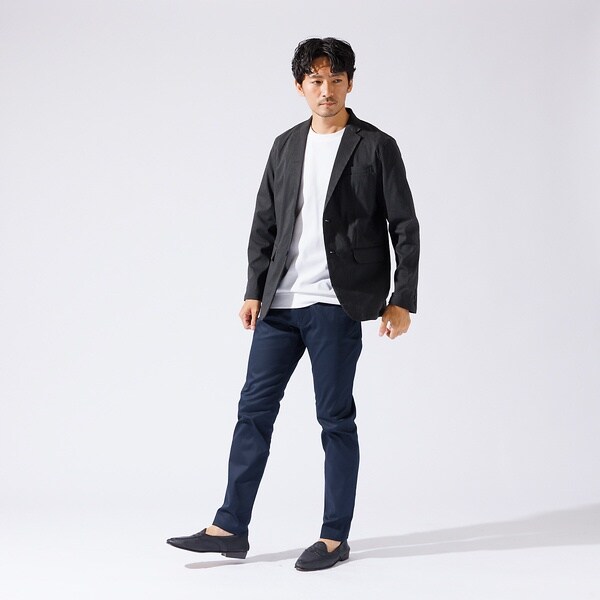 トップスにはTシャツ、足元はスニーカーで合わせた定番カジュアルスタイルからジャケットやローファーとあわせてのキレイめスタイルにもオススメです。