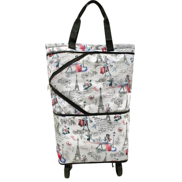 お出掛けする時は便利なトート。帰りにはラクラクキャリーに変身!持ち運びに便利なコンパクトショッピングキャリー。