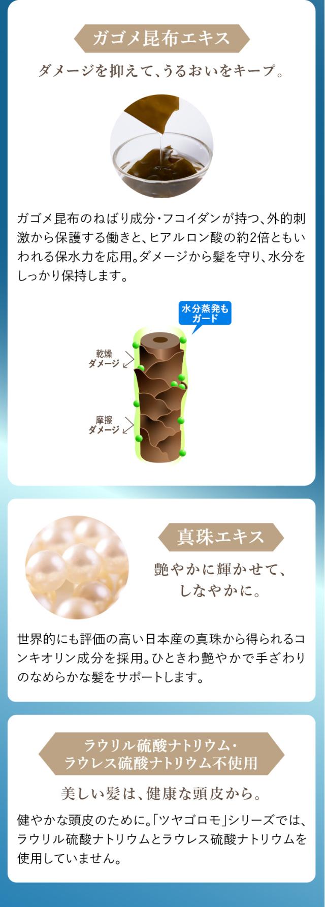 ツヤゴロモ ミネラルリペアシャンプート ⇒ ツヤゴロモ ミネラルリペアトリートメント ⇒ シルキーヘアエッセンス ⇒ モイストヘアスタイリング