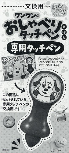 「いないいないばあっ! ワンワンの おしゃべりタッチペンえほん」(価格 本体4980円)専用の音声タッチペンです。本品は交換用のペンです。必ず、本体(えほんとタッチペンのセット)を別途ご購入ください。このペン単品では遊ぶことができません。このペンは、えほん「いないいないばあっ! ワンワンの おしゃべりタッチペンえほん」に印刷されている見えないドットコードを読み取って音声が再生されます。他のえほんをタッチしても反応しません。