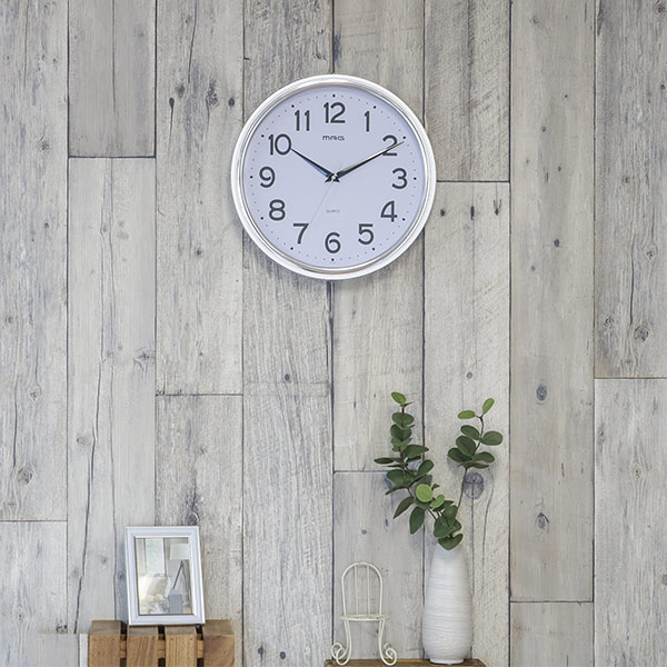 シンプルでベーシックなデザインです。ご家庭はもちろん、学習施設やオフィスなどにもおススメです。また、音の静かな連続秒針で、カチカチ音がしないので、音が気になるお部屋にもピッタリです。