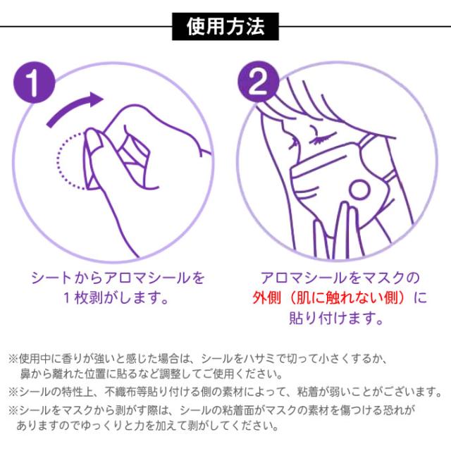 マスク以外にも服の襟やお休み時の枕などに貼ると、本格的なアロマが楽しめます。