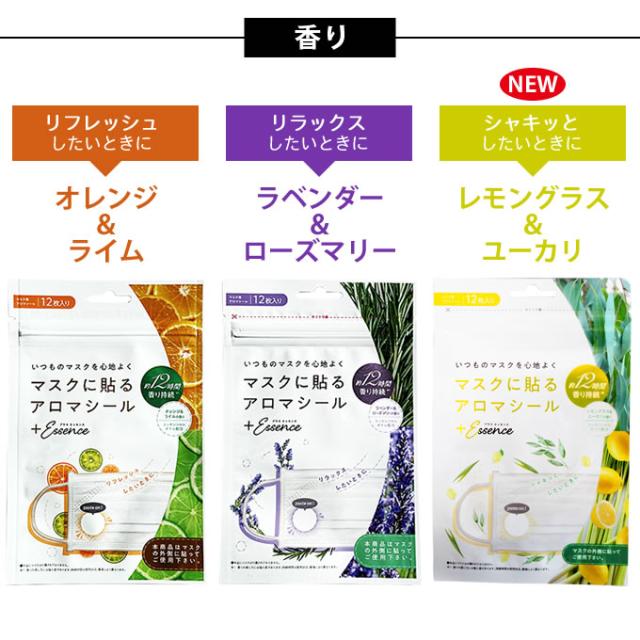 ★メール便★プラスエッセンス マスクアロマシール 12枚入り マスクシール マスクステッカー アロマオイル シール 布マスク シール 使い捨てマスクシール 不織布マスク シール 香り 匂い マスクにつける 貼るタイプ