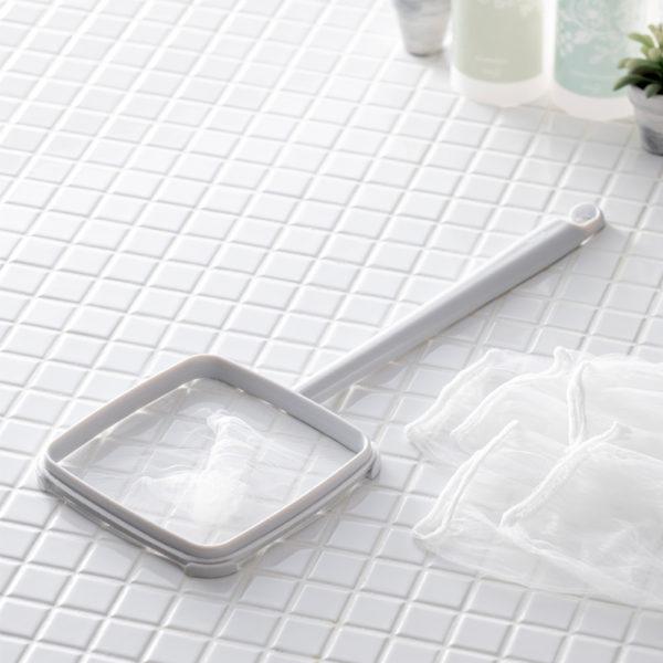 使用後はネットを外して、すくったゴミをネットごと捨てられるので、いつでも清潔にお使いいただけます。また、ネットは小さいゴミもキャッチする、水通りの良い目の細かいメッシュ生地を使用しています。※交換用ネット6枚入り