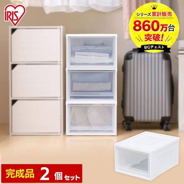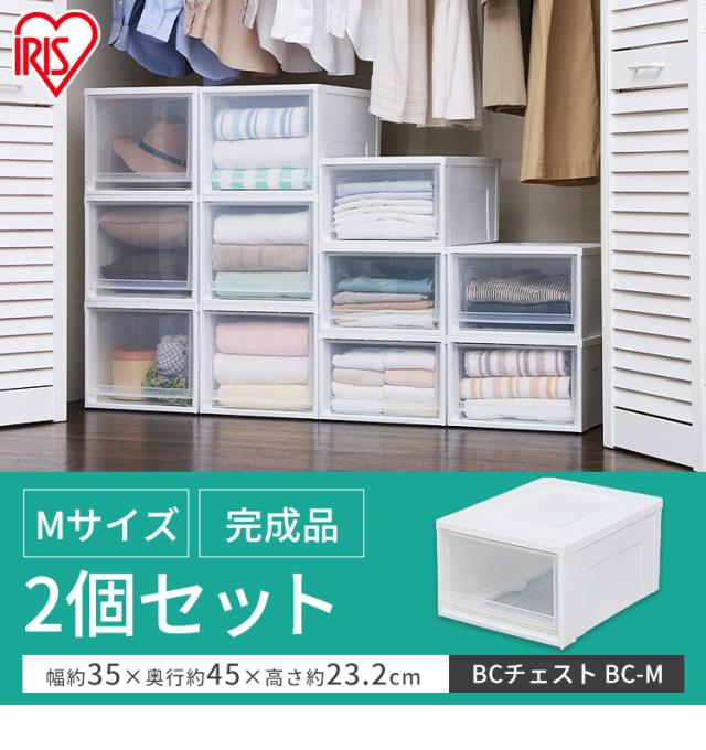 【2個】 収納ボックス 引き出し 一段 収納ケース 幅35 奥行45 高さ23.2 衣類収納ケース チェスト 完成品 タンス 衣装ケース アイリスオーヤマ 収納 押入れ クローゼット クリア コンパクト 積み重ね プラスチック BCチェスト Mサイズ 浅型 BC-M *
