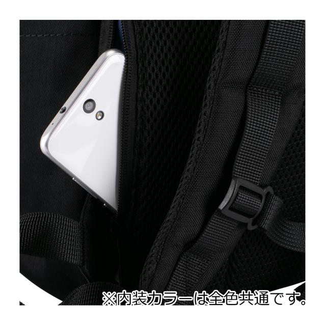 正面はシンプルでも底面のビッグロゴがアクセントに。背面にはスマートフォンやパスケースなどの出し入れに便利なポケットと中にダイレクトにアクセスできるファスナー付き。