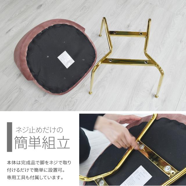 | 【仕様】 商品サイズ:W500×D480×H735mm(SH420mm) 素 材:【座面】ウレタン・ベニヤ板 【生地】ベロア 【脚/フレーム】スチールパイプ(ゴールドメッキ塗装) 重 量:約5kg 耐 荷 重:約80kg 形 状:組立品 |