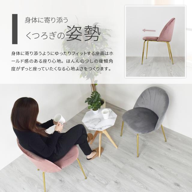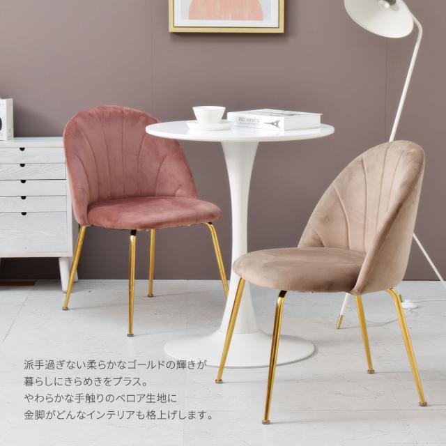 ベロア&ゴールド脚 ダイニングチェア 【送料無料】 椅子 ラウンジチェア クッション おしゃれ 可愛い 高級感 1人掛け リビングチェア フェミニン 家具