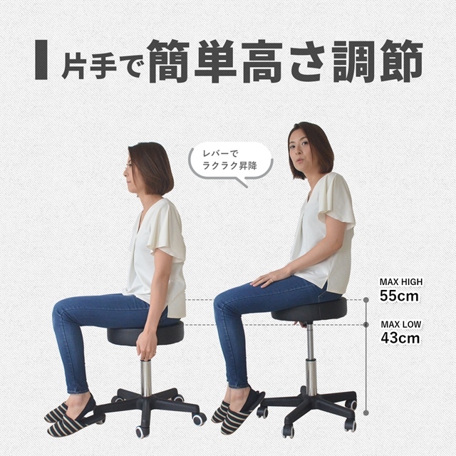 【仕様】 商品サイズ:W475×D475×H430〜580mm 素 材:【座面】ウレタン・合板 【生地】PUレザー(抗菌生地仕様) 【脚/フレーム】スチールパイプ(クロムメッキ塗装) 重 量:約3.5kg 耐 荷 重:約80kg 形 状:組立品 |