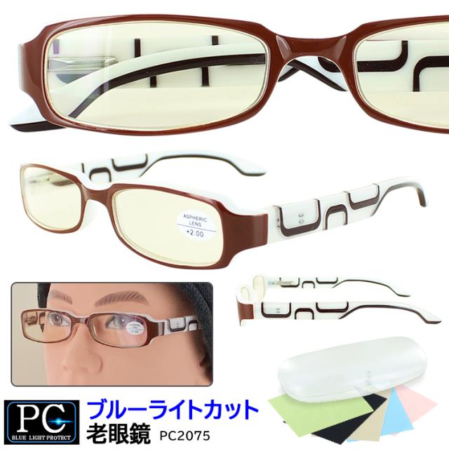 【 おしゃれ シニアグラス リーディンググラス ブルーライトカット 非球面レンズ】PC2075