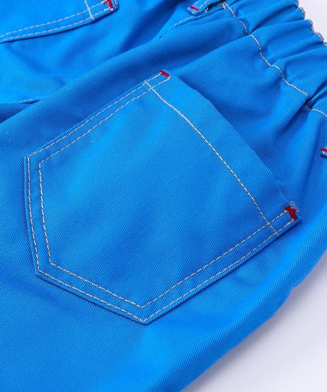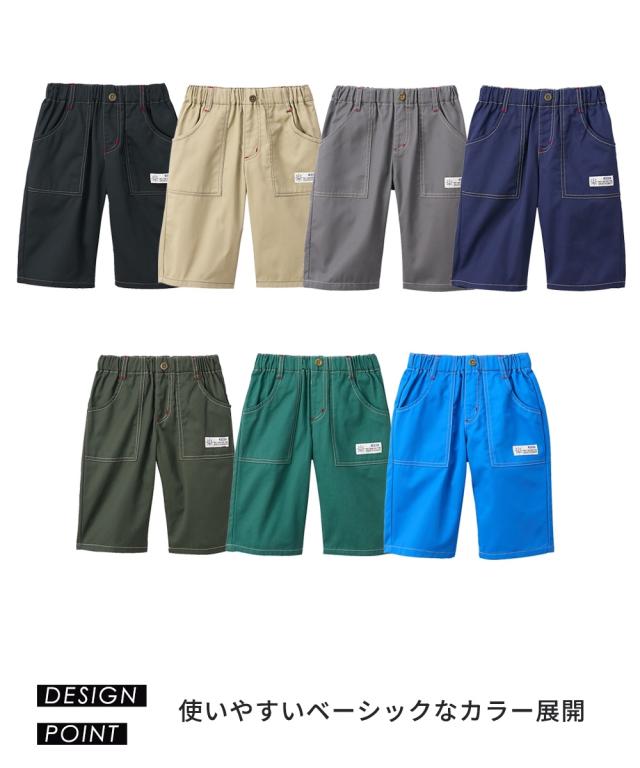 動きやすいハーフ丈が人気です。大き目のポケットが前についていて便利。後ろにもポケットがあるよ。お好きな色を選んでくださいね。