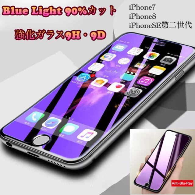 iPhone7 iPhone8 iPhoneSE ブルーライトフィルム 強化ガラス 指紋防止 飛散防止 9D 9H ブルーライトカット 目の保護 液晶フィルム ガラスフィルム ブルーライト 保護フィルム