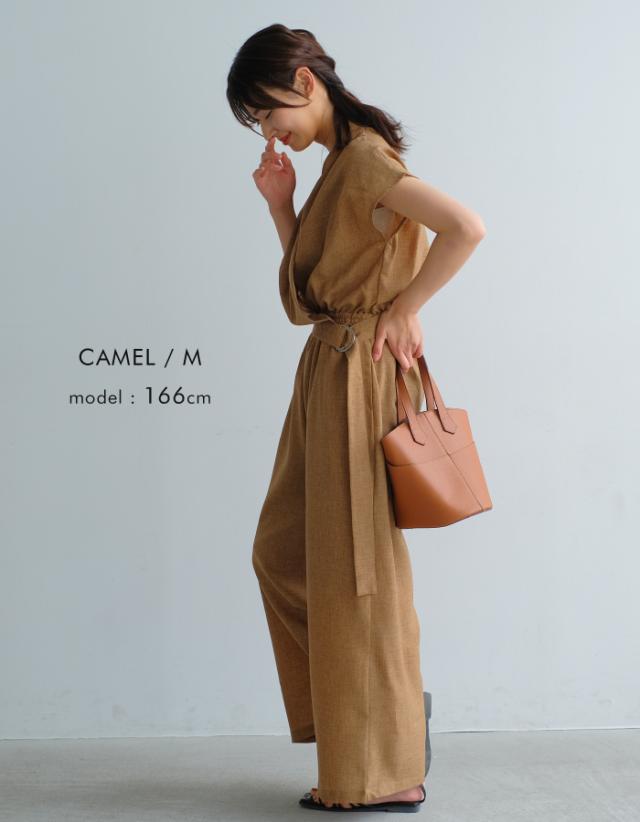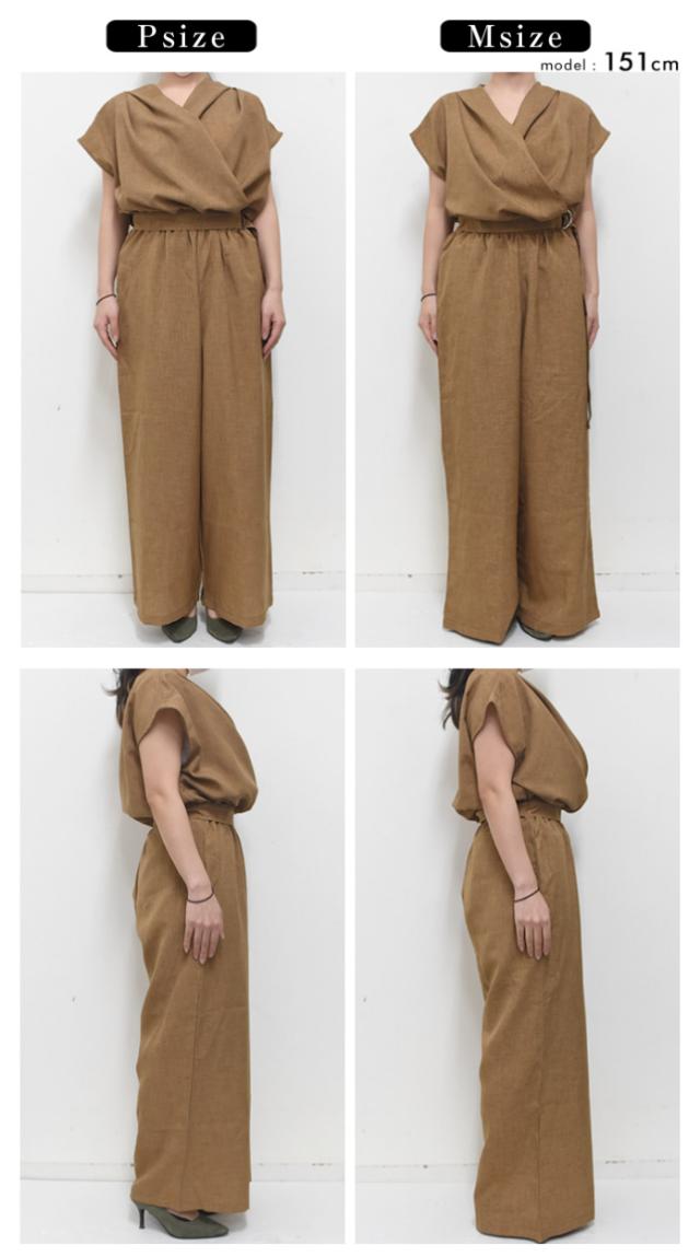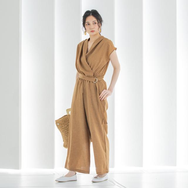 スラブ生地のナチュラルな風合いが魅力のオールインワン。
