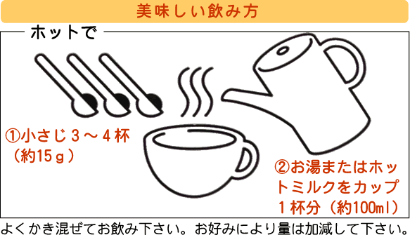 - 飲みやすい、一日に2〜3杯呑んでいます。身体がポカポカ温まってきます。続けて飲んでいこうと思います。