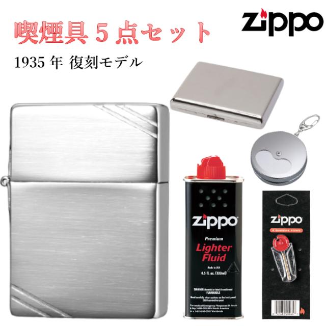 1935復刻モデルZIPPOに、オイル/フリント/シガレットケース/携帯灰皿が付いたセットです。