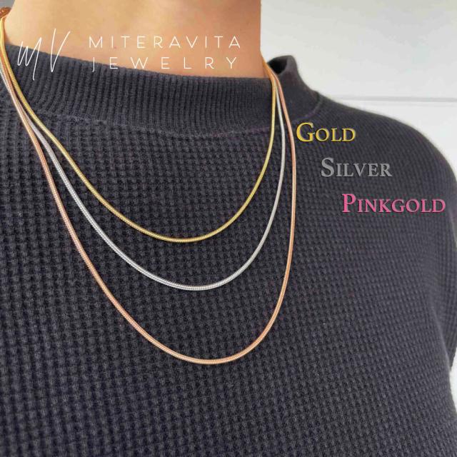 金属アレルギー対応 ネックレス サージカルステンレス つけっぱなし 錆びない 変色しない ネックレス【n20】ユニセックス 細め 1mm 1.5mm 2mm 幅 スネークチェーン ネックレス 38cm/39cm/41cm/42cm/45cm/51cm/56cm/70cm