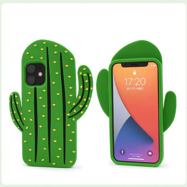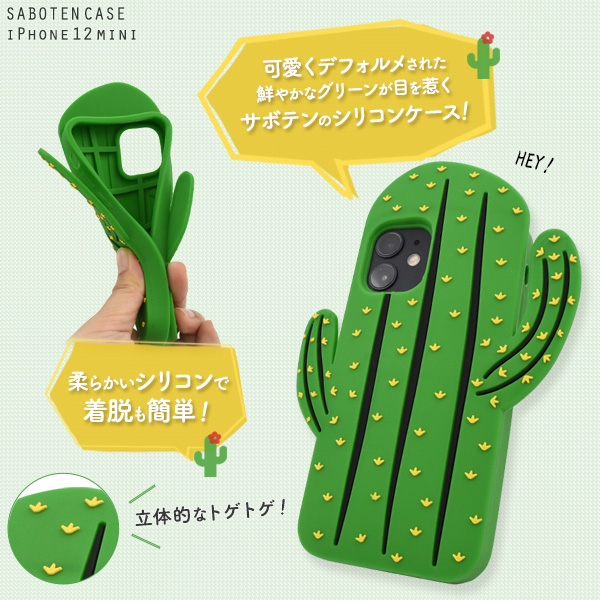 スマートフォンケース iPhone12mini用 サボテンケース 装着簡単 可愛い シリコンケース 背面保護 さぼてん アイフォンケース 携帯ケース スマホケース キュート かわいい お洒落 背面 保護カバー バックカバー SoftBank au docomo