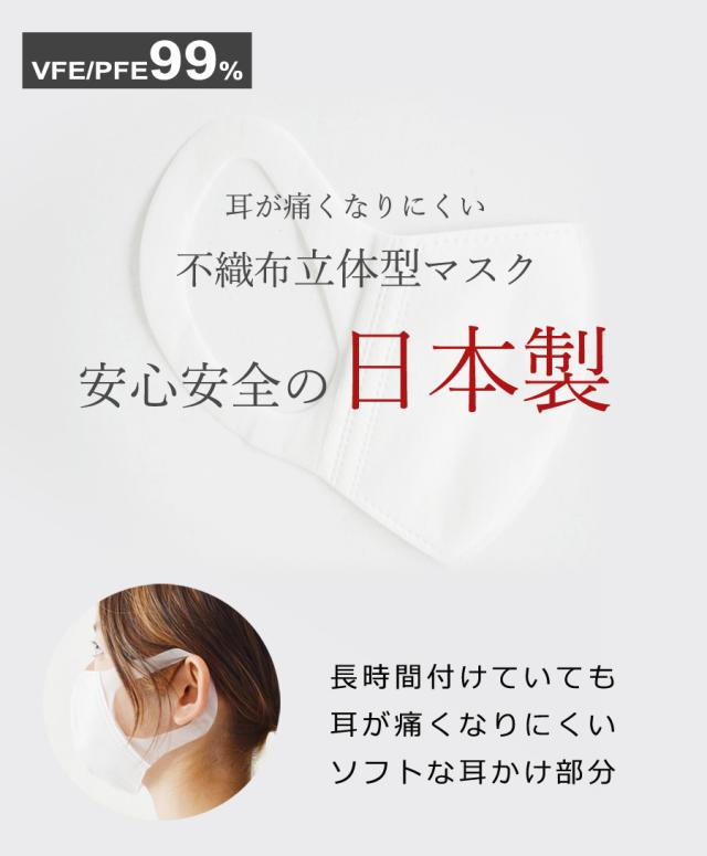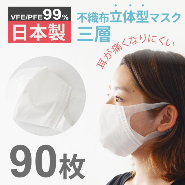 マスク 不織布 日本製 立体マスク 90枚 使い捨て 大容量 普通サイズ 男女兼用 3層構造 3d 3Dマスク 息がしやすい 耳が痛くない 送料無料