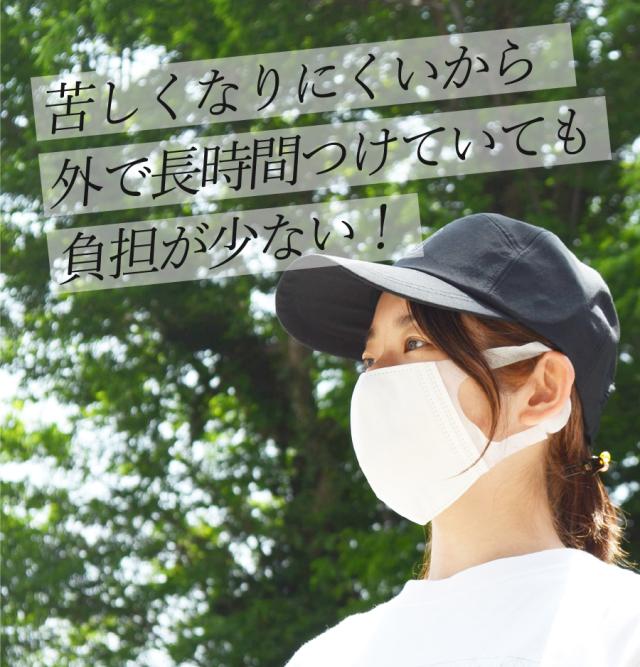 ●口にはりつかない立体構造で、口もとに空間ができ呼吸がしやすい!