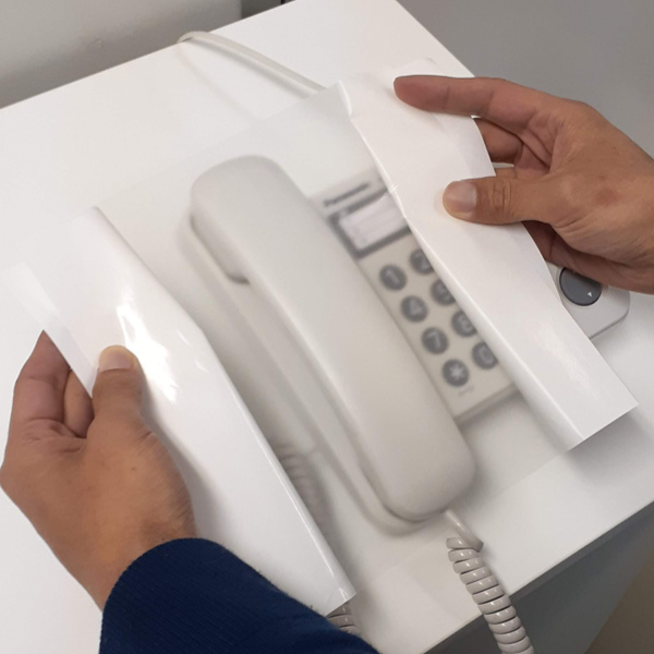 ●柔らかいので手すりや電話の受話器など曲面にもサッと貼れます。