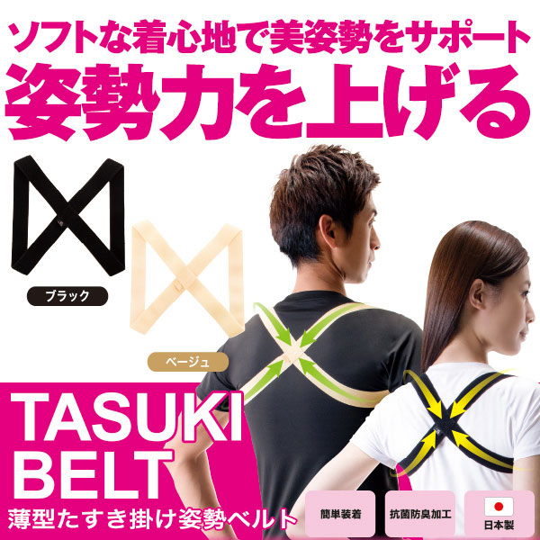 薄型たすき掛け姿勢ベルト 姿勢 矯正 猫背 簡単装着 抗菌防臭加工 日本製 伸縮性 快適 肩甲骨 背筋 ゴムベルト