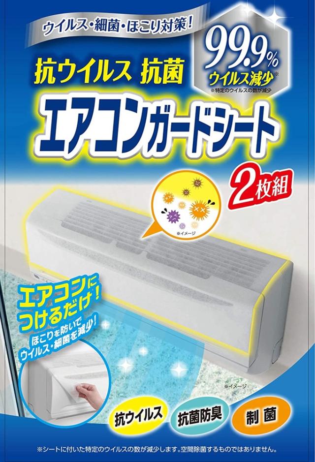・エアコンにつけるだけでほこりと一緒にウイルス・細菌を減少させるシート