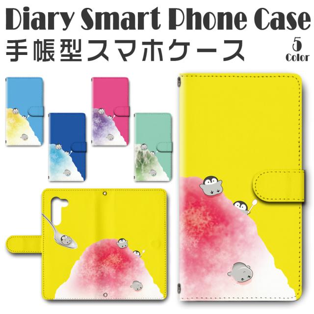 スマホケース スマホ ケース スマホカバー スマホ カバー 手帳型 シンプルスマホ5 A001SH 対応 送料無料 ペンギン カキ氷 ペンペン / dc-658