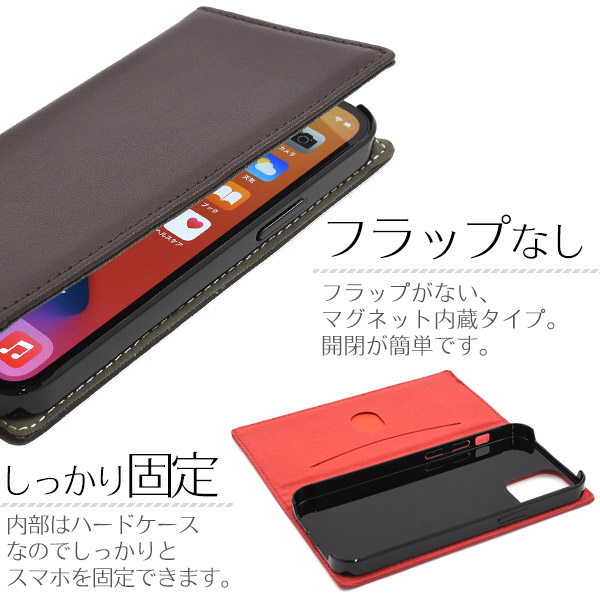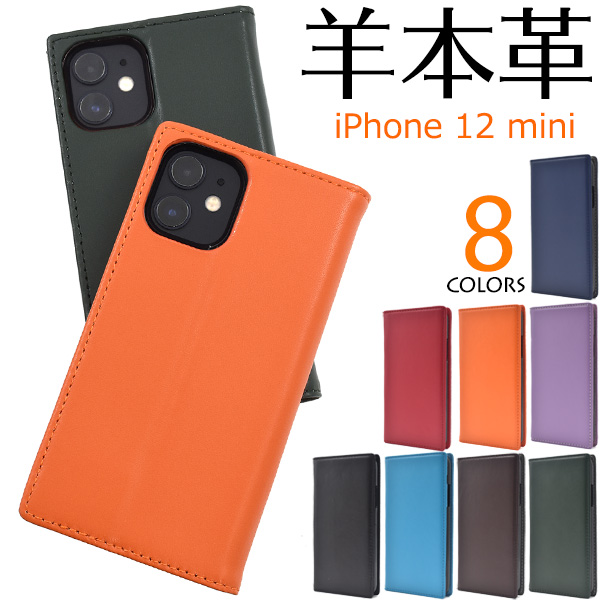 スマートフォンケース iPhone12mini用 手帳型 羊本革 スマホケース ベーシック 携帯ケース 上品 フラップなし 無地 お洒落 スマホカバー オシャレ おしゃれ 保護カバー オトナ女子 大人女子 大人っぽい 落ち着いたデザイン SoftBank au docomo