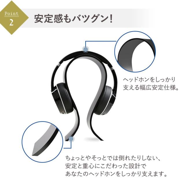 バランス良く設計されたデザインなので、ヘッドホンがずれることなくしっかりと支えます。
