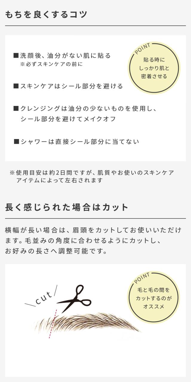 水に濡らして貼るだけで、簡単にキレイな眉毛が仕上がります。