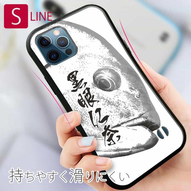 S-LINE ケース iPhone13 mini iPhone13 Pro Max iPhone12 Pro iPhone11 Pro iPhoneXs iPhoneXR Xperia 5 III Xperia 10 III Pixel 5a AQUOS sense6 釣り 魚 ルアー オナガグレ 墨絵風(白)