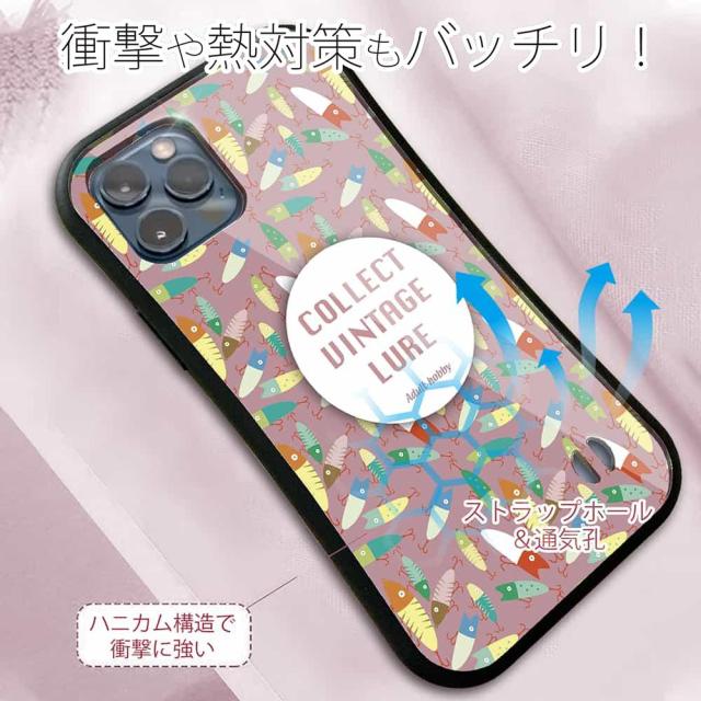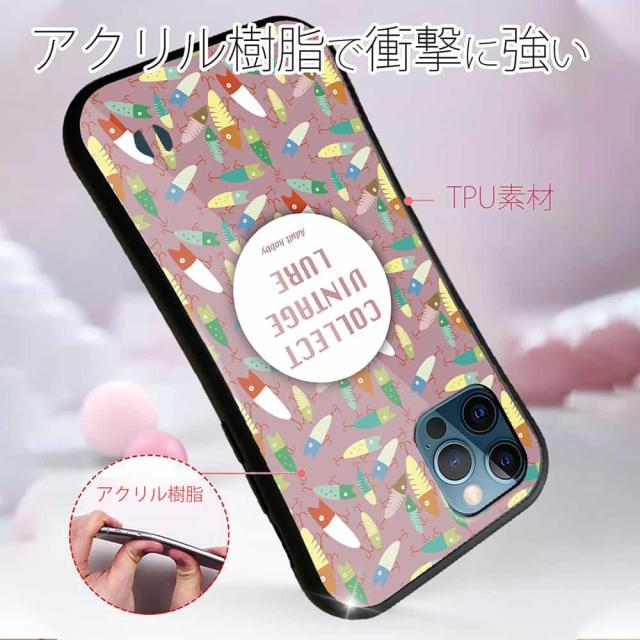 | 商品説明 | 落下や衝撃に強いTPUケース+綺麗に印刷できるアクリル板でプリント。ルアーを抽象的にイラスト化したパターンデザイン。カラーはピンク。 |