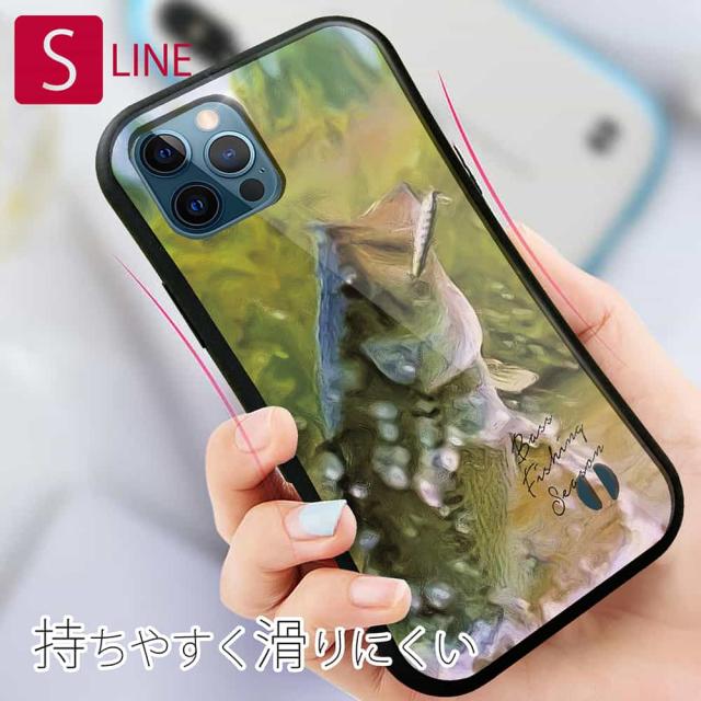 S-LINE ケース iPhone13 mini iPhone13 Pro Max iPhone12 Pro iPhone11 Pro iPhoneXs iPhoneXR Xperia 5 III Xperia 10 III Pixel 5a AQUOS sense6 釣り 魚 ルアー バスがバイトした瞬間の出来事