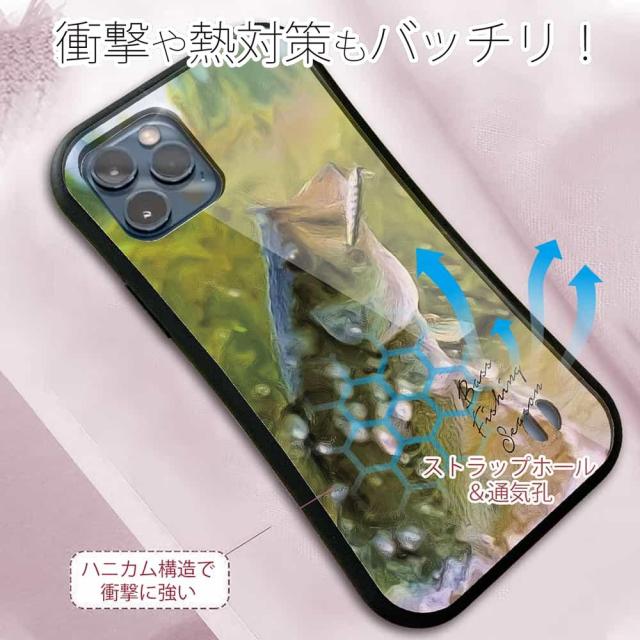 | 商品説明 | 落下や衝撃に強いTPUケース+綺麗に印刷できるアクリル板でプリント。ゆっくりとリーリングしたルアーの後ろで、一瞬だけギラッと輝いた。来た!と思うよりも先に水面が爆発し、バスが水を割った!急いでロッドをたて、そのまま強引にファイトに持ち込む…。 |
