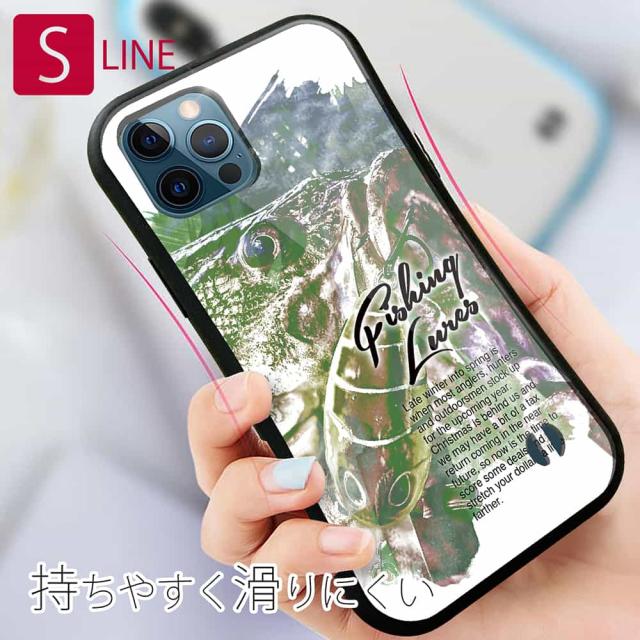 S-LINE ケース iPhone13 mini iPhone13 Pro Max iPhone12 Pro iPhone11 Pro iPhoneXs iPhoneXR Xperia 5 III Xperia 10 III Pixel 5a AQUOS sense6 釣り 魚 ルアー ブラックバスのバイト ペイント風 グリーン
