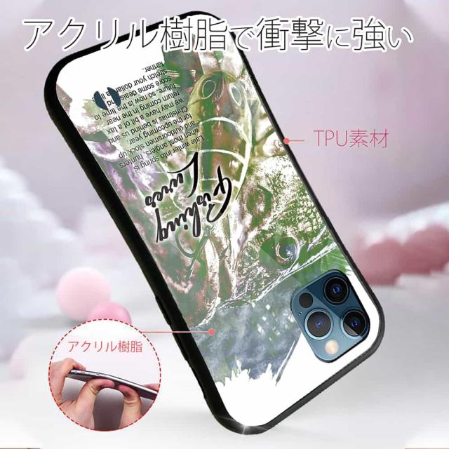 | ケースについて | 機種によって、TPUケースの形状が若干異なります。商品画像はiPhone12 Proをベースに撮影して掲載していますが、実際はご希望の機種毎にカメラ穴や指紋認証の穴が違います。ケース右下にストラップホール付き。 |