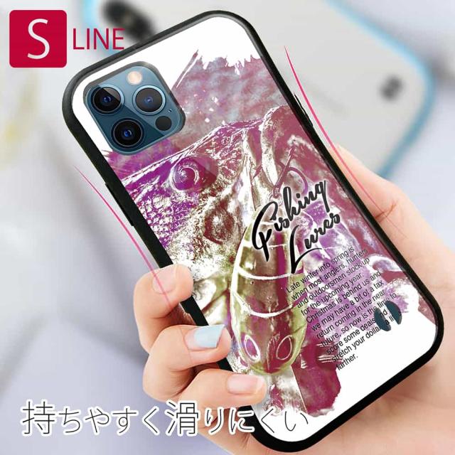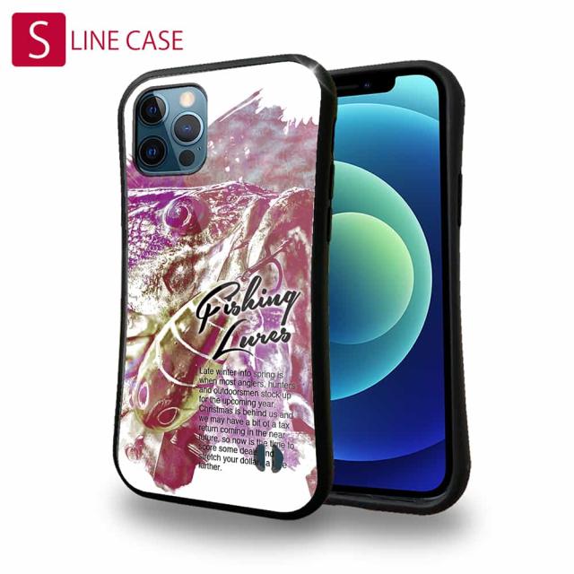 S-LINE ケース iPhone13 mini iPhone13 Pro Max iPhone12 Pro iPhone11 Pro iPhoneXs iPhoneXR Xperia 5 III Xperia 10 III Pixel 5a AQUOS sense6 釣り 魚 ルアー ブラックバスのバイト ペイント風 レッド