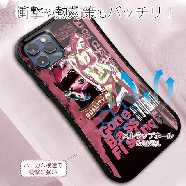 | 素 材 | 側面はゴムのように柔らかいTPU素材で、背面は衝撃に強いアクリル樹脂で、スマホ本体を守ります。ケースの内側はハニカム構造!スマホ本体の熱を逃がすばかりか、衝撃にも強い構造となっています。万が一の落下でもケースが割れることがないばかりか、TPUはシリコンとは異なり伸びることもなく、スマホの脱着が容易なケースとなります。 |
