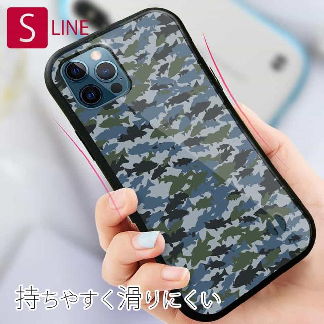 S-LINE ケース iPhone13 mini iPhone13 Pro Max iPhone12 Pro iPhone11 Pro iPhoneXs iPhoneXR Xperia 5 III Xperia 10 III Pixel 5a AQUOS sense6 釣り 魚 ルアー ブラックバス 迷彩柄 ブルー