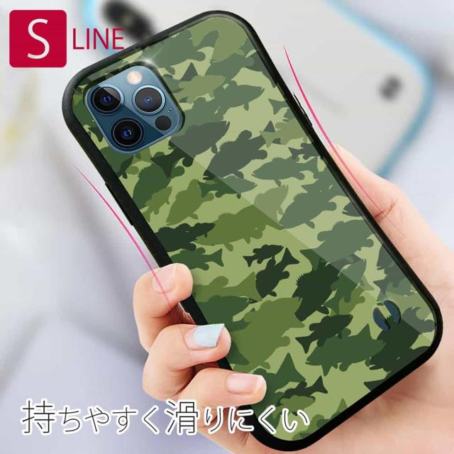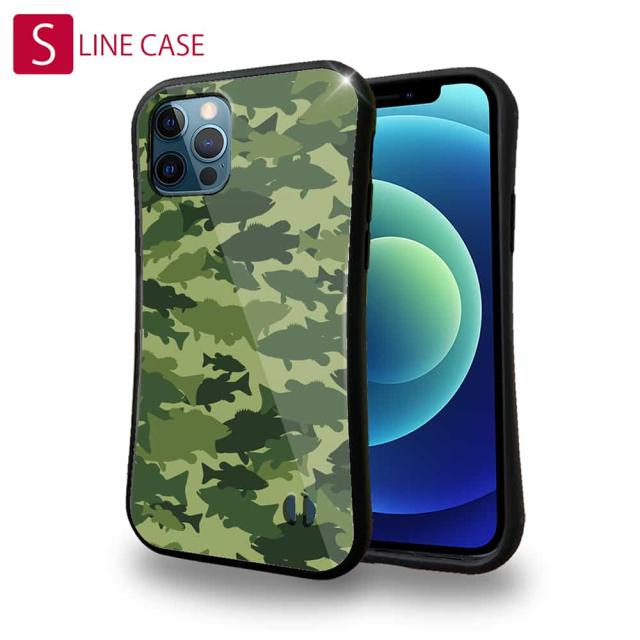 S-LINE ケース iPhone13 mini iPhone13 Pro Max iPhone12 Pro iPhone11 Pro iPhoneXs iPhoneXR Xperia 5 III Xperia 10 III Pixel 5a AQUOS sense6 釣り 魚 ルアー ブラックバス 迷彩大柄 フォレストグリーン